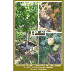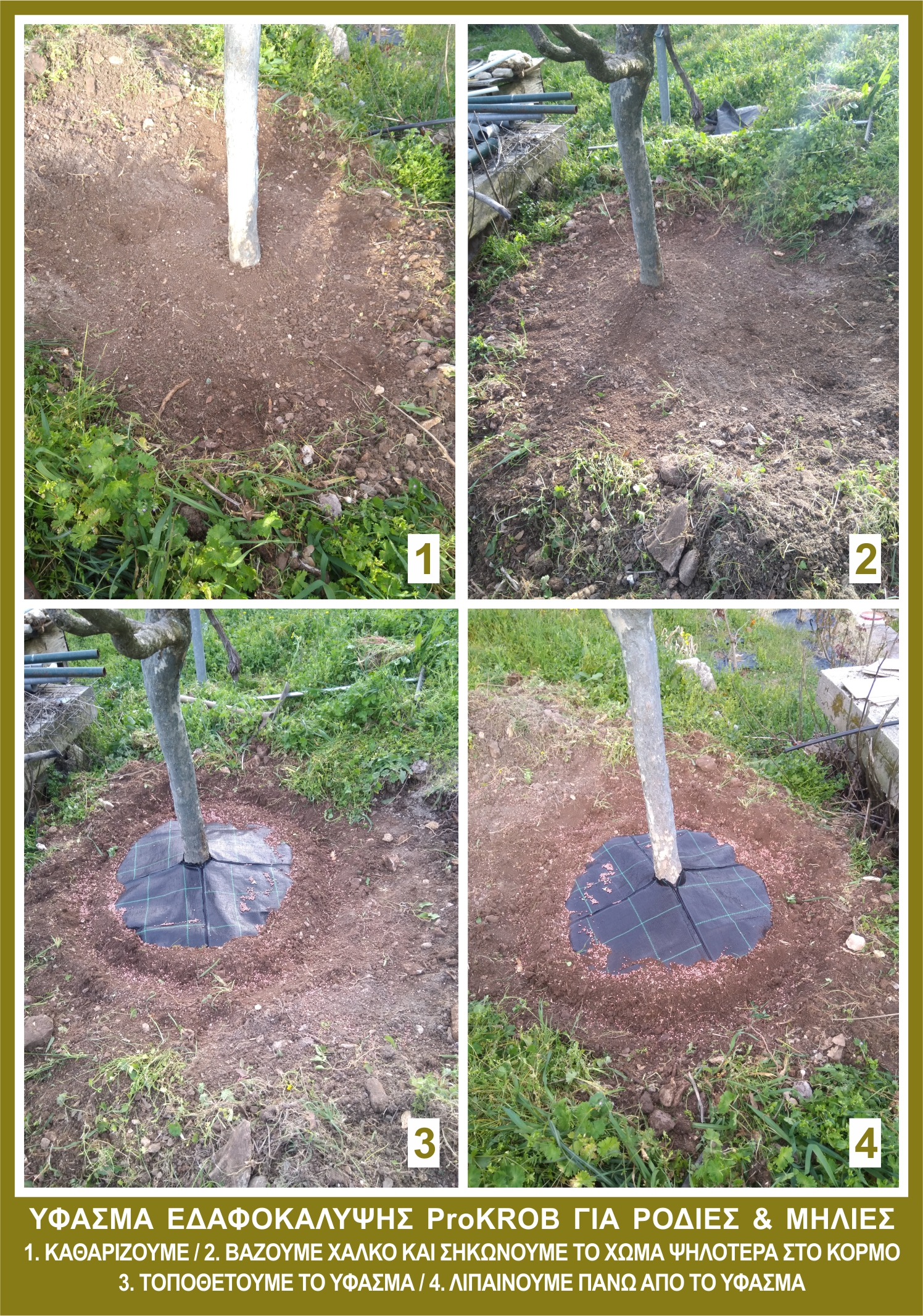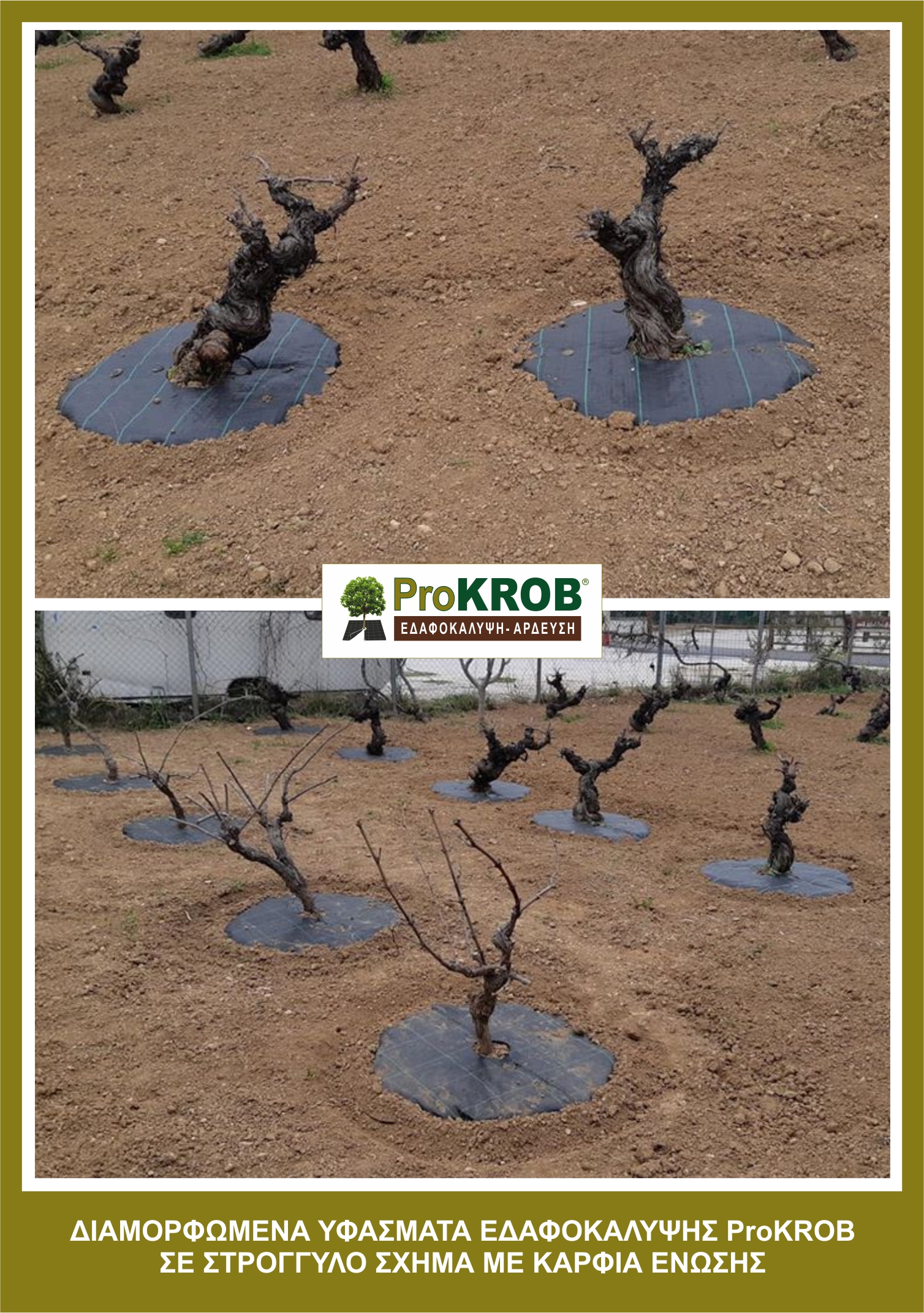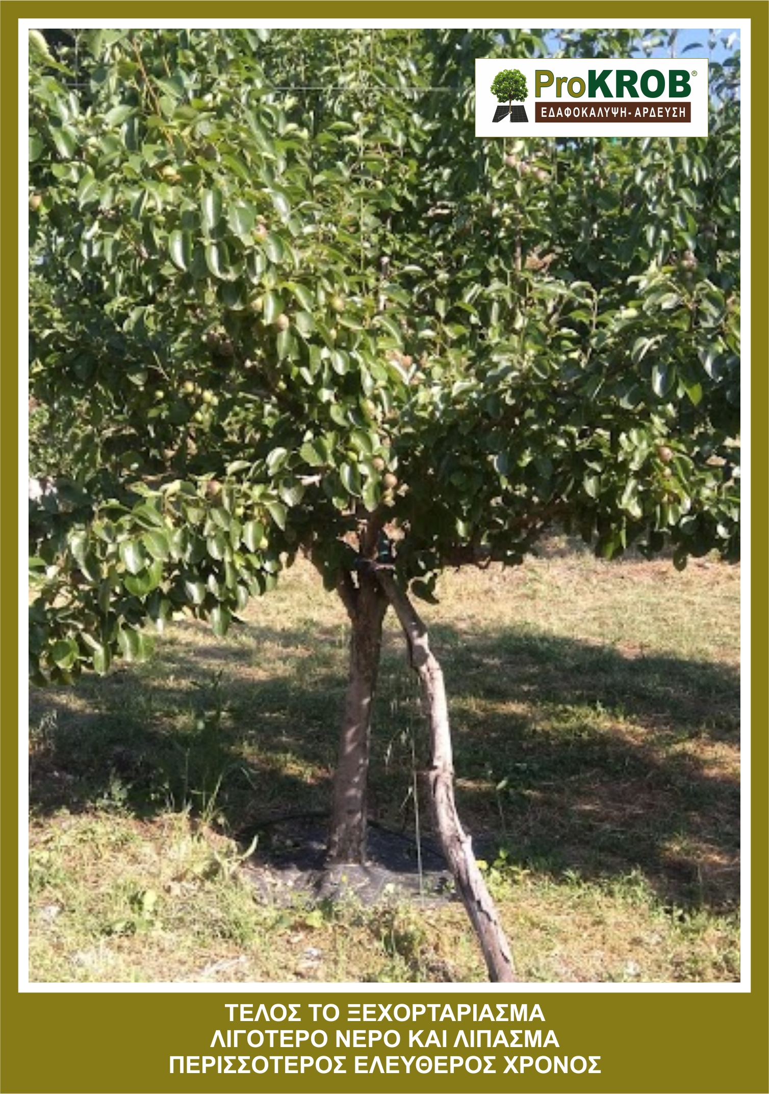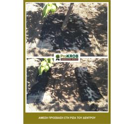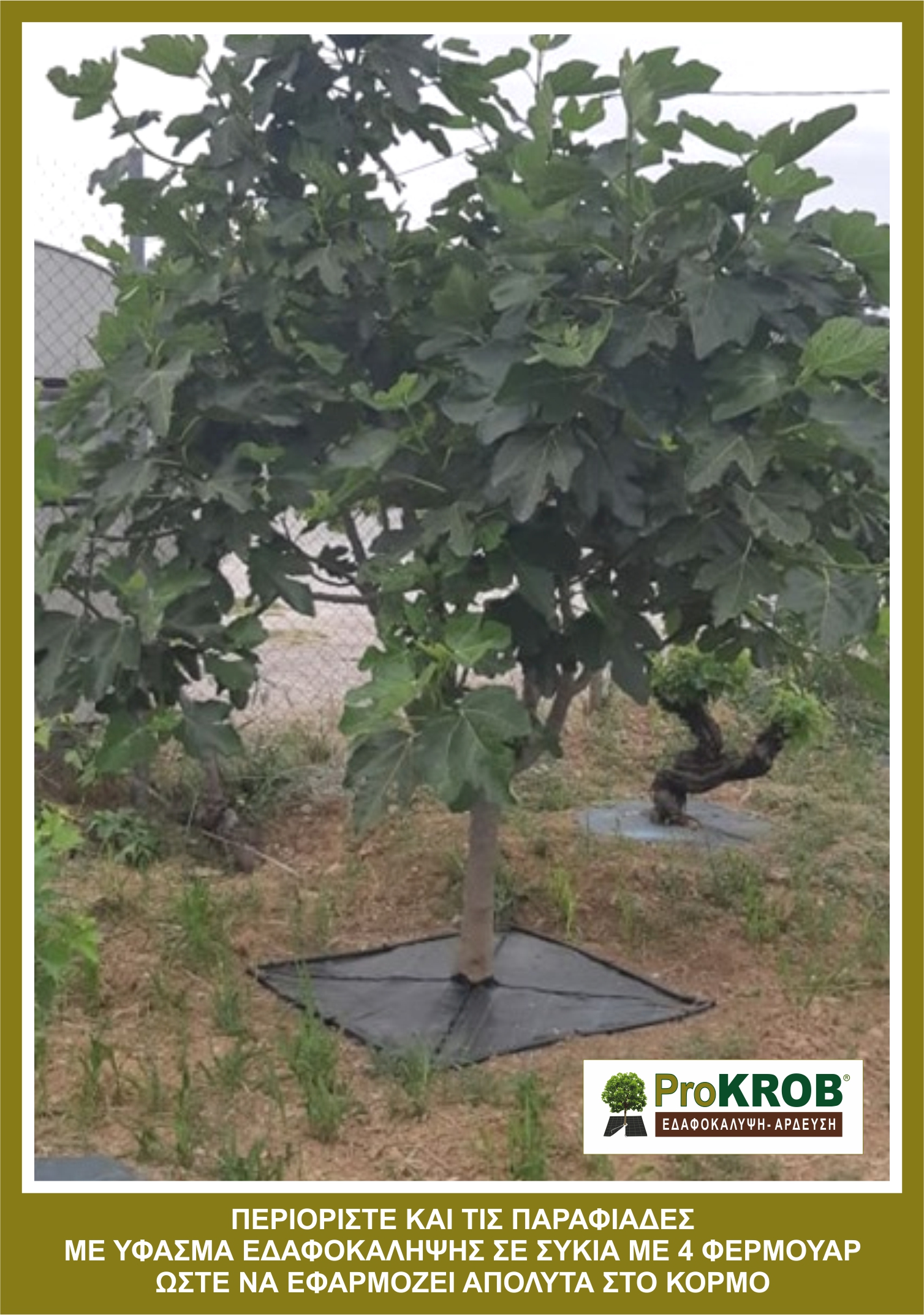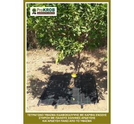 To ύφασμα εδαφοκάλυψης της PRO KROB παράγεται σε διαφορετικές διαστάσεις και διαφορετικά σχήματα, τετράγωνα ή στρογγυλά, για την ατομική προστασία του φυτού ή του δέντρου. Το μεγάλο, όμως, πλεονέκτημα στο ύφασμα της PRO KROB είναι ότι προσαρμόζονται δύο φερμουάρ που βοηθούν αφ’ ενός μεν στη τοποθέτηση γύρω από τη ρίζα του φυτού ή τον κορμό του δέντρου και αφ’ ετέρου στην εύκολη πρόσβαση, άνοιγμα – κλείσιμο, για κάθε είδους εργασία. (πχ. παροχή λιπάσματος) Έτσι μας επιτρέπει επανειλημμένες μελλοντικές χρήσεις. Για τη στήριξή του στο έδαφος το ύφασμα εδαφοκάλυψης της PRO KROB φέρει περιμετρικά συγκεκριμένες οπές, μέσω των οποίων διέρχονται τα καρφιά της στήριξης. Μ’ αυτόν τον τρόπο επιτυγχάνουμε την ασφαλή και σταθερή τοποθέτησή του. Η γκάμα των διαστάσεων της PRO KROB καλύπτει σχεδόν όλες τις ανάγκες, από ένα θάμνο μιας τριανταφυλλιάς …. Έως τον κορμό μιας καρυδιάς.