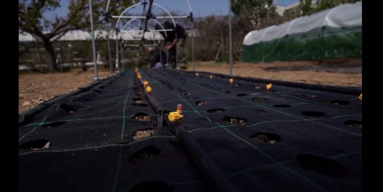 ΜΙΚΡΟΤΟΥΝΕΛ ΕΔΑΦΟΥΣ ProKROB & Τοποθέτηση διαμορφωμένου υφάσματος για την καλλιέργεια κρεμμυδιού